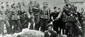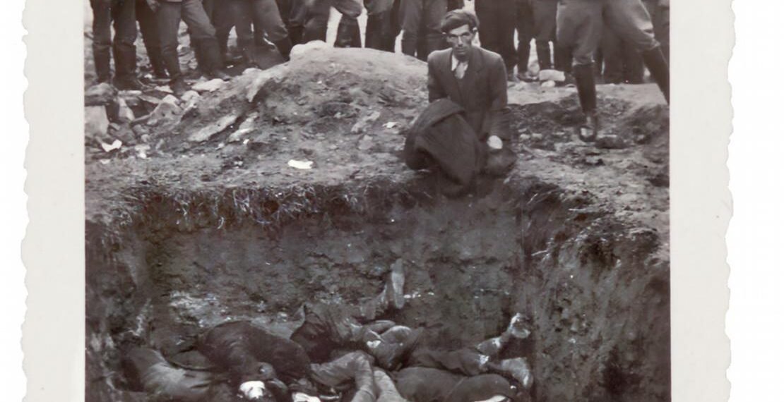 Até a primavera europeia de 1942, 100.000 pessoas – principalmente judeus – haviam sido assassinadas pelos nazistas do Comando C na Ucrânia. Entre elas, um homem com cabelos volumosos e maçãs do rosto salientes, vestindo um sobretudo e agachado à beira de uma vala com um olhar resignado, segundos antes de ser baleado.