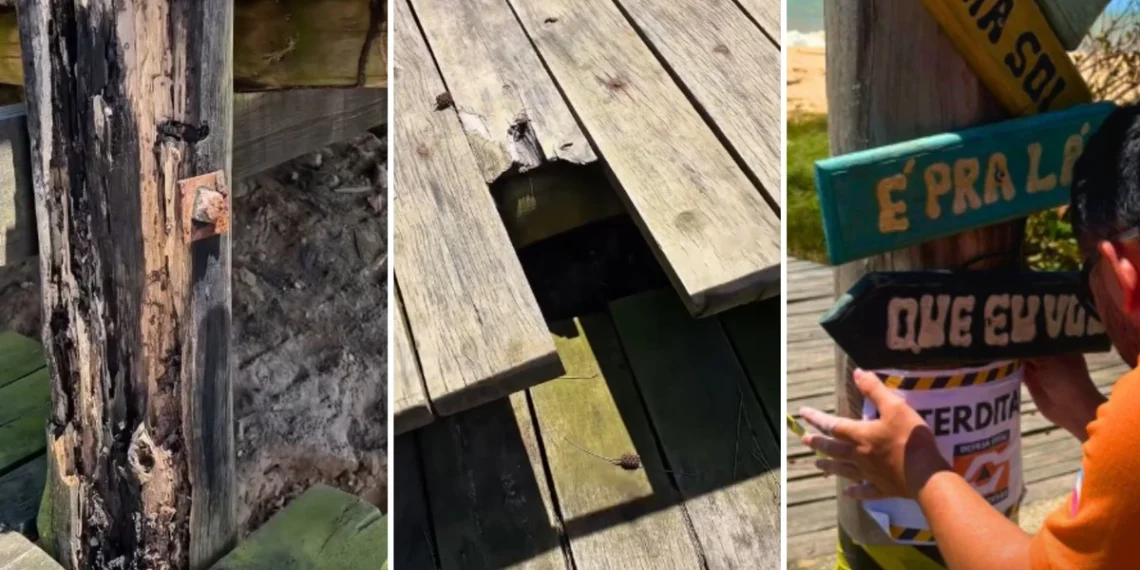 A Defesa Civil de Marataízes, no Litoral Sul do Espírito Santo, interditou preventivamente um deque de madeira na orla de Lagoa Funda, nesta quarta-feira (29), após identificar possíveis riscos estruturais no local. Nas imagens divulgadas pelo órgão, é possível ver pilares e tábuas danificadas.