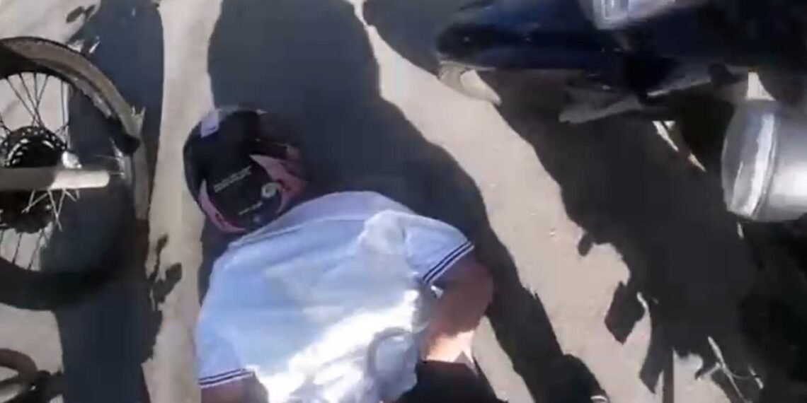O momento da prisão do motociclista foi gravado pela câmera corporal de um dos agentes.
