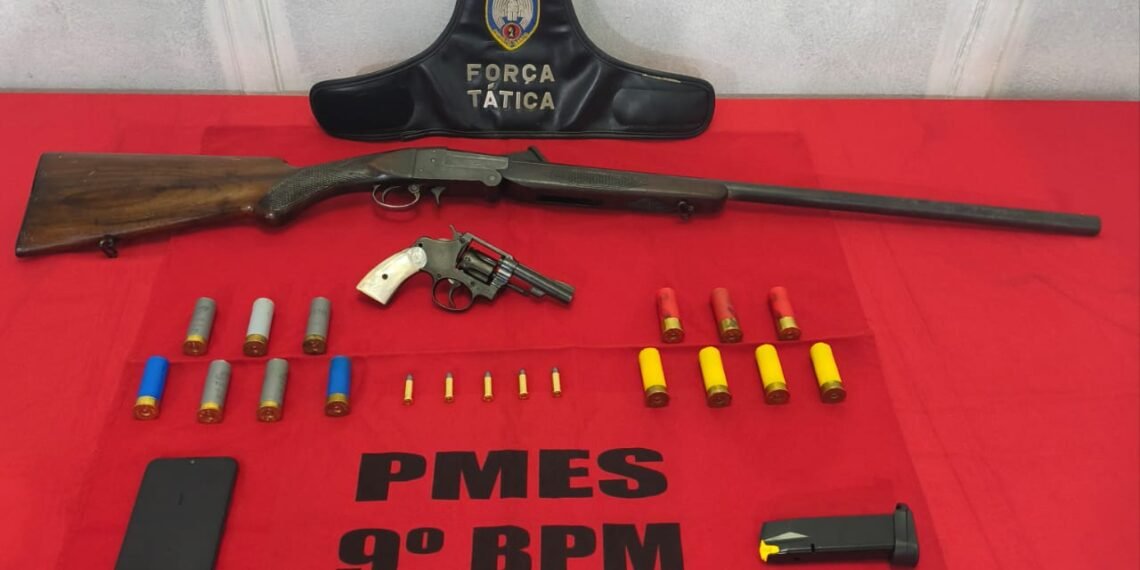 As pessoas demonstraram nervosismo ao notar a presença das viaturas, tentando inclusive sair do local, seguindo diferentes direções. Foi realizada a abordagem e localizado no referido veículo, de propriedade de Clériton Rodrigo, uma espingarda calibre 12 e 14 munições do mesmo calibre.